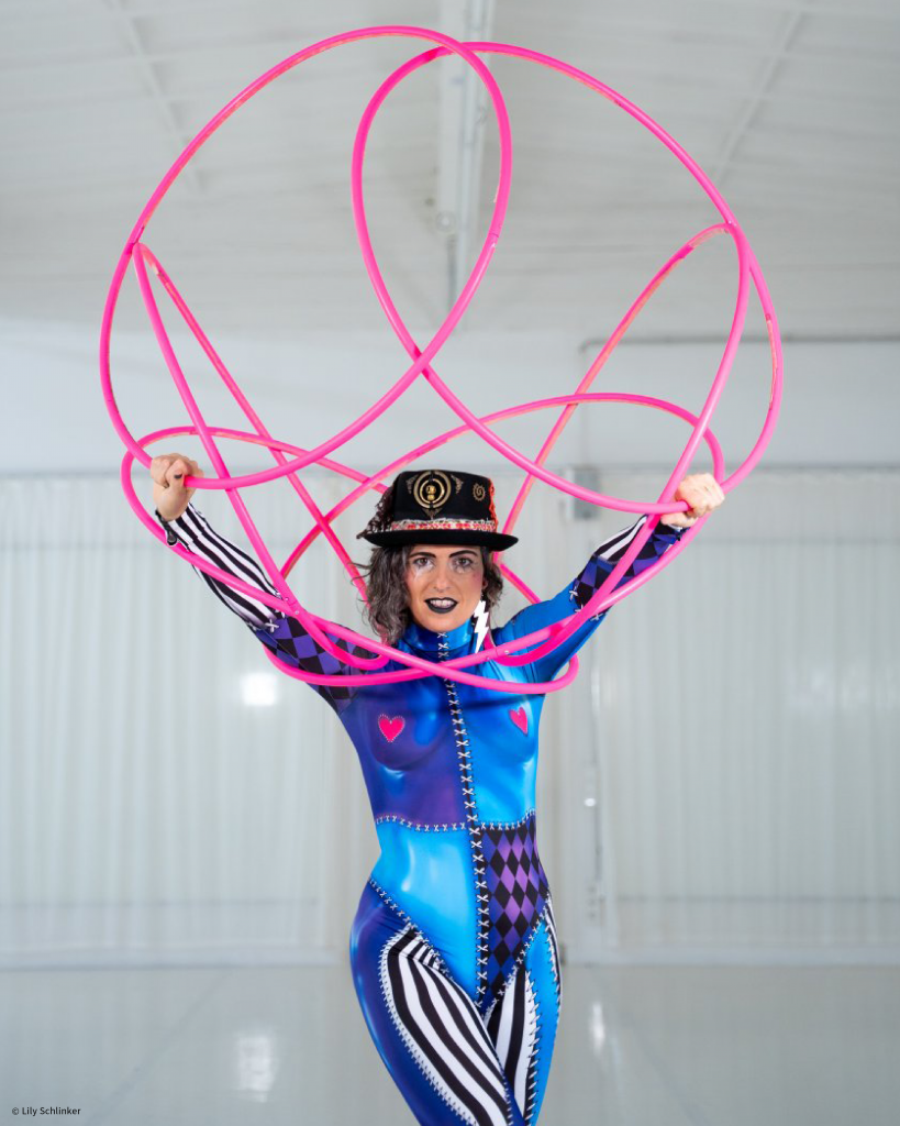 Carla Mannias – Ka Whoops – ist Hula-Hop- und Flow-Künstlerin mit Sitz in Berlin. Sie liebt es aufzutreten und ihre Leidenschaft durch Bühnenauftritte und Workshops für alle Altersgruppen – von Kindern bis zu Senior*innen– zu teilen.